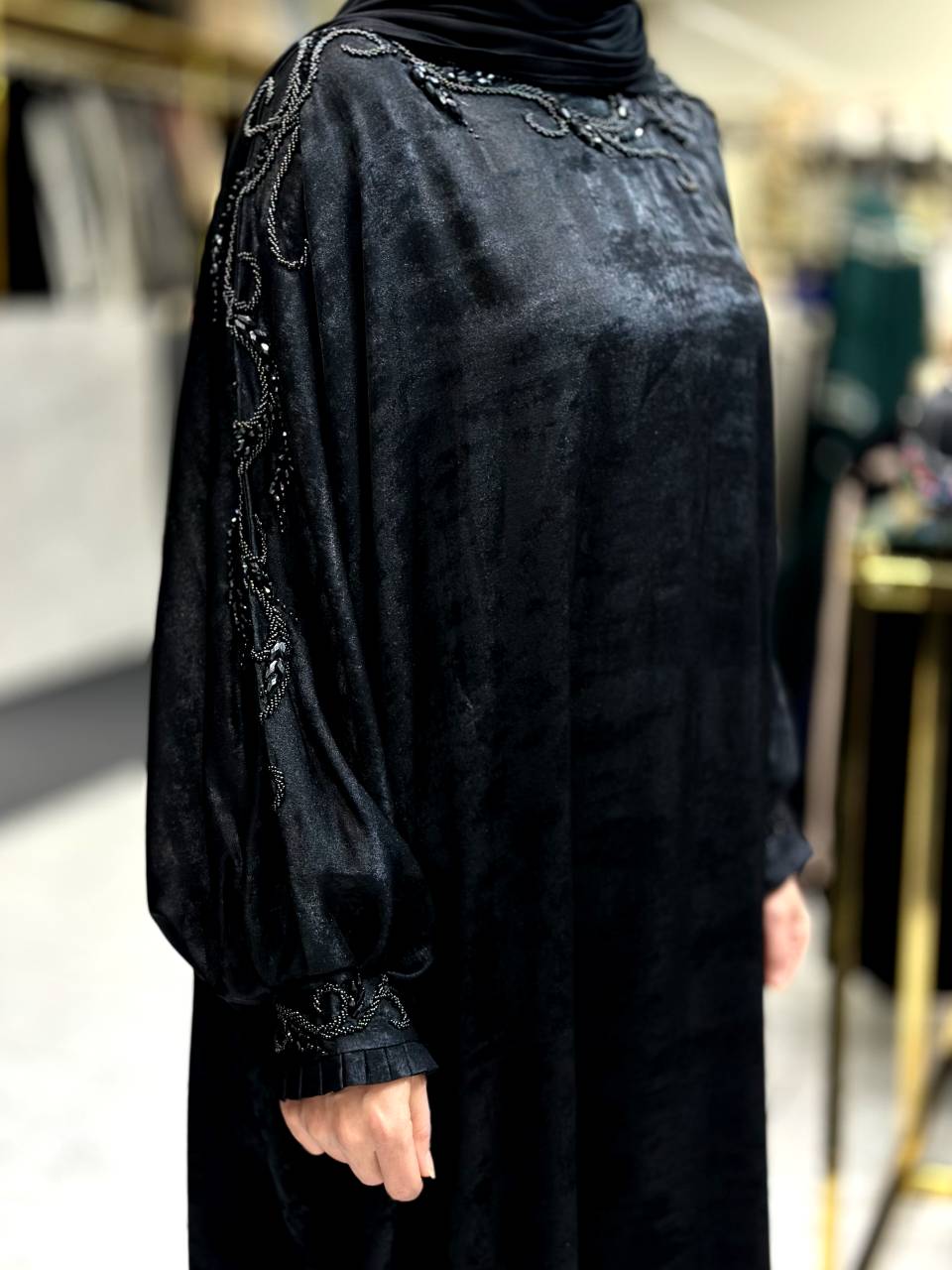 چادر دانشجویی آستین دار کرپ جواهر دوزی