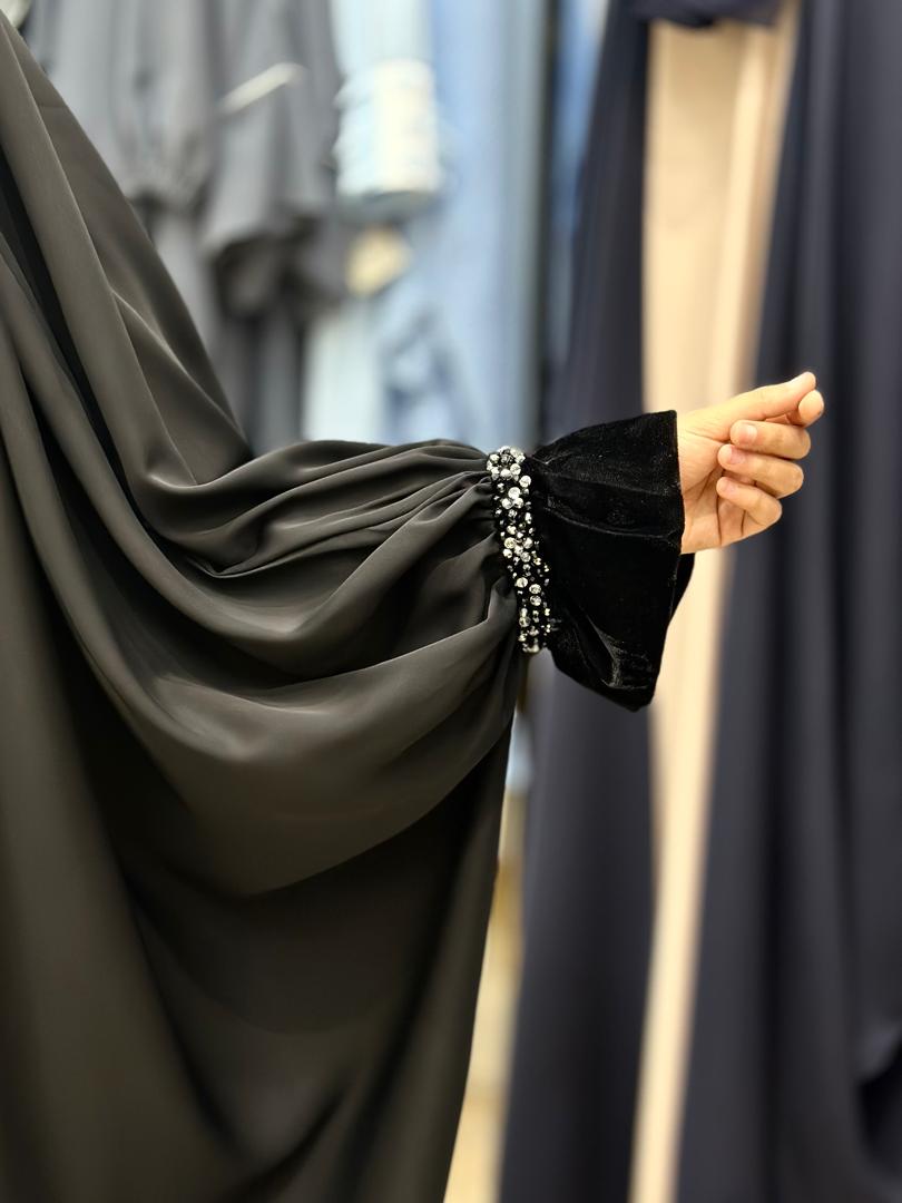 چادر دانشجویی آستین دار کرپ جواهر دوزی