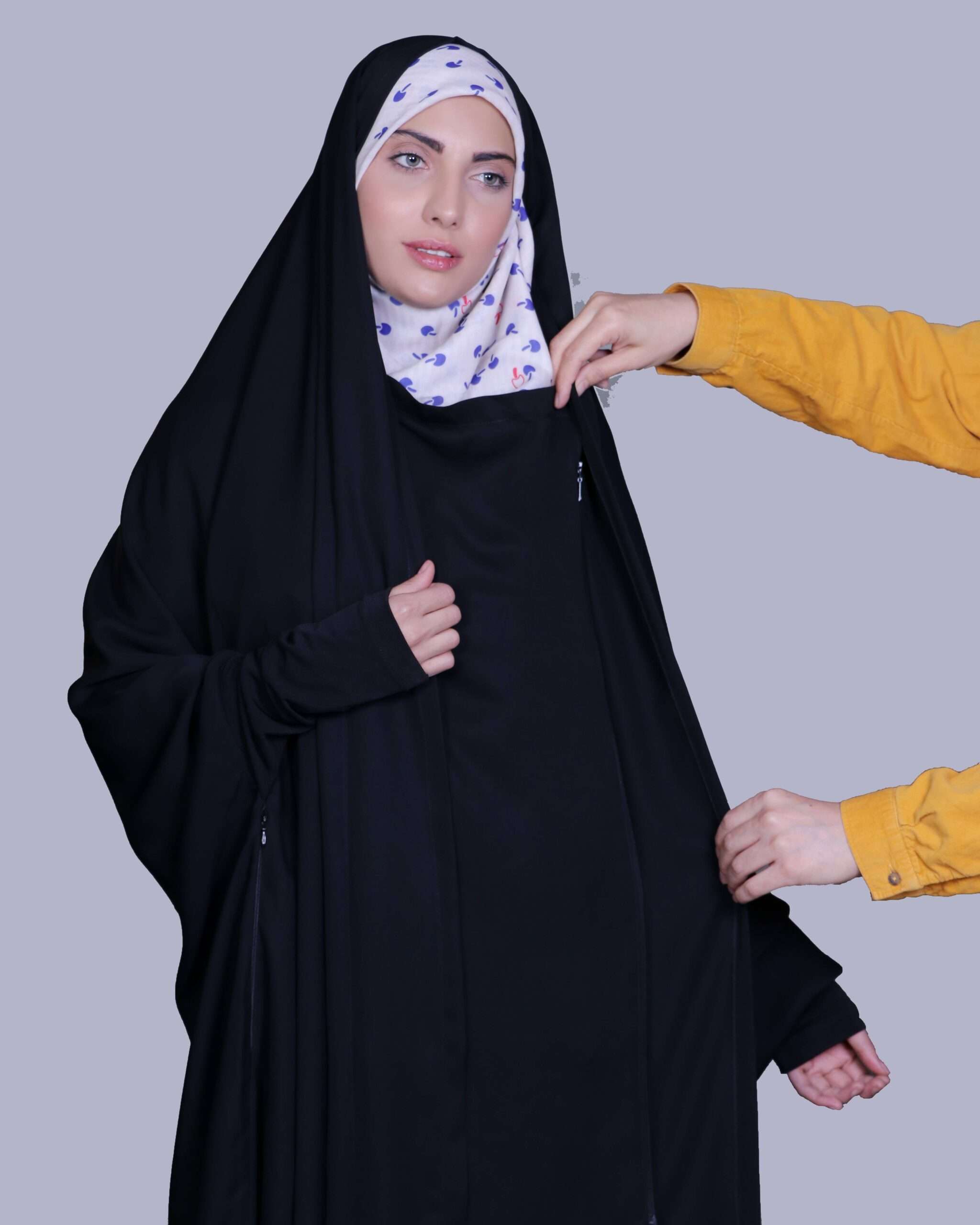 - مدل: چادر مشکی جلو بسته و کاملا پوشیده